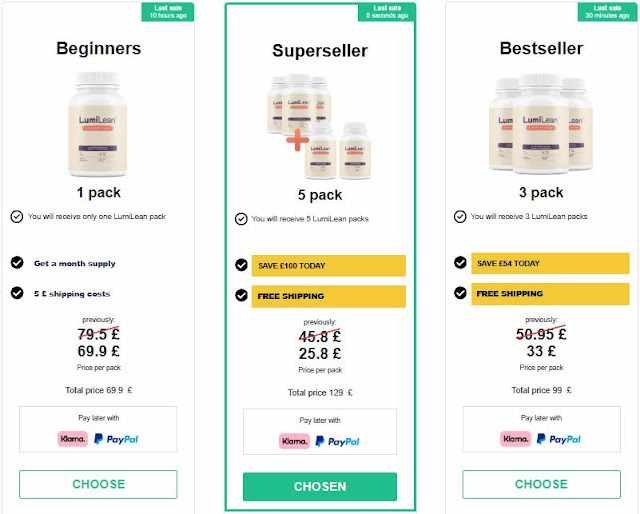 2. LumiLean, three bottles, 33£ each